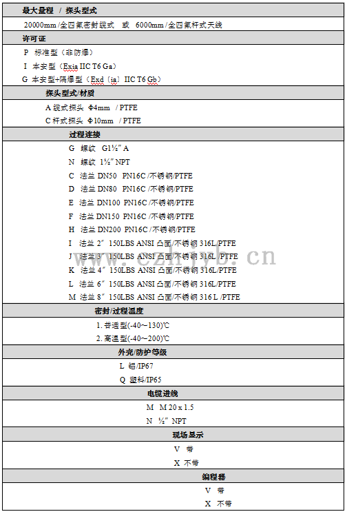 本產品的防爆形式為本質安全型。防爆標志:Exia IIC T6。本安型導波雷達物位計采用壓鑄鋁外殼材料,電子部件采用膠封 結構,從而確保電路部分故障時產生的火花不會泄放出來。本產品適用于Exia IIC T6 防爆等級以下可燃性介質的物位連續測量。